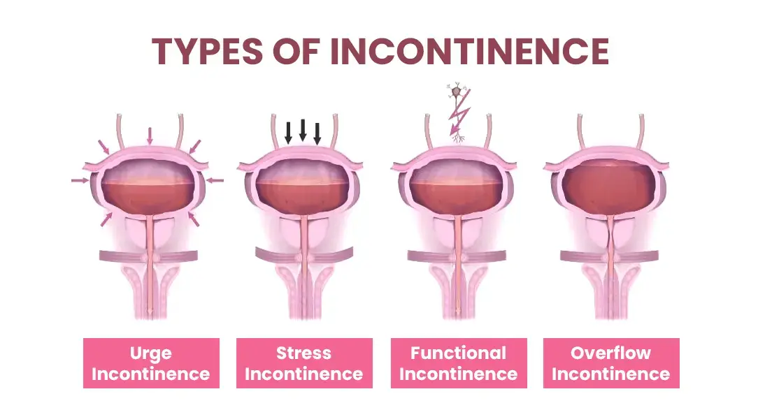 Functional Incontinence - as we age and mobility gets harder and harder, people with normal bladder control can have a hard time getting to the bathroom in time to relieve themselves.